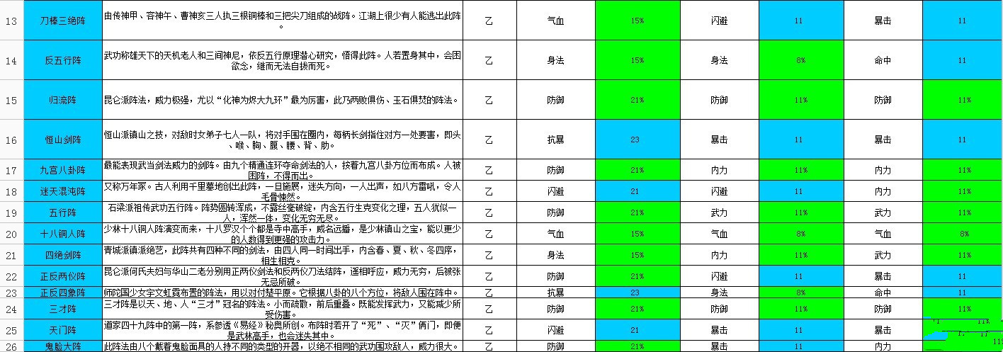 接下来请还需要武侠Q传阵法基本数据及阵法增幅的小伙伴仔细查看了哦。