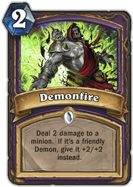 效果: 对一个手下造成2点伤害。如果目标是友方的恶魔,改為赋予它+2/+2。