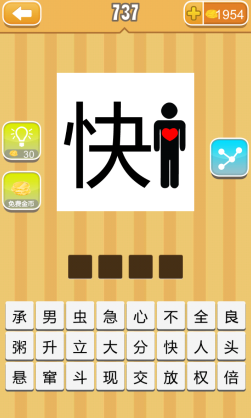 疯狂猜图游戏中关卡多样化,这里解析部分较难关卡内容。疯狂才成语游戏中有这样一张图片。图片为一个快字,而在快字旁边为一个小黑人,而它拥有一颗红色的心。具体图片如下图: