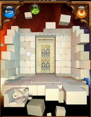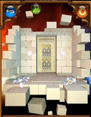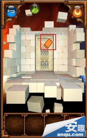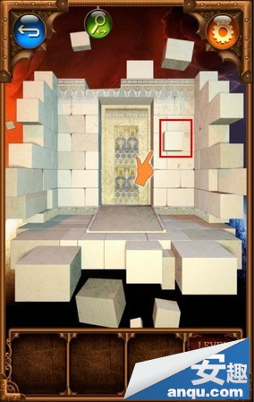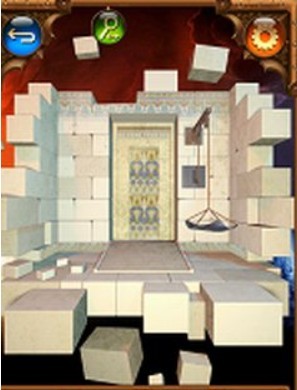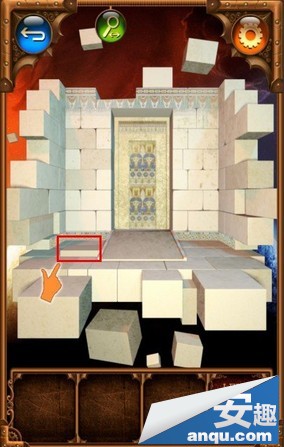 第九关,左右摇晃手机,上面的石块就会掉下来,出现一个图案,将下面的一个石块移开,出现最后一个图案,然后按照从左到右顺时针的方向,以蛇形图案开始,点击门上指针对应的图案。
