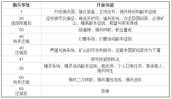 以上,就是大家在佣兵的不同等级时会开放的功能说明,祝大家游戏开心哈,更多相关攻略内容,关注我们哈!