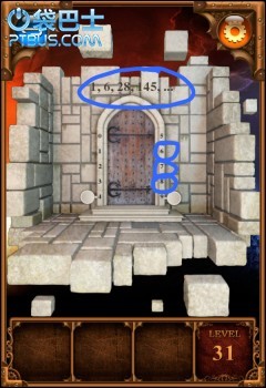 百层迷门第31关攻略:首先我们可以看到门上方有数字,1、6、28、145。其中的规律是(1+1)x3=6、28=(6+1)*4、145=(28+1)*5、876=(145+1)*6,所以我们知道这里的答案就是876,然后在右侧按钮处678各点一下即可。