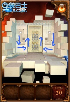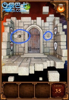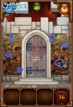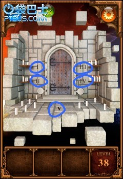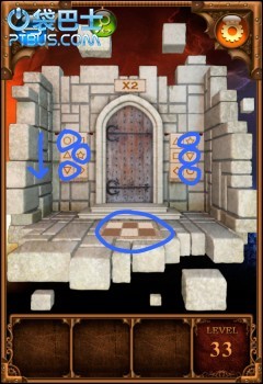 第33关:在第33关中我们可以看到门上有许多符号,X2即是表示两次的意思。而地下毛毯的深色部分,则是代表需要的图形,而正确的图形就是圆形、五星、倒三角。然后正确的顺序就是:左圆形-右圆形-左五星-右五星- 左倒三角- 右倒三角。