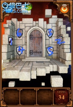 第34关:34关中我们可以看到许多盾牌,每个盾牌都有代表的数字,具体就是看其上面的数字。从左上到右下的数字分别是1、6、4、3、5、2,然后按照阿拉伯数字的顺序,点击这些盾牌,然后即可通关。