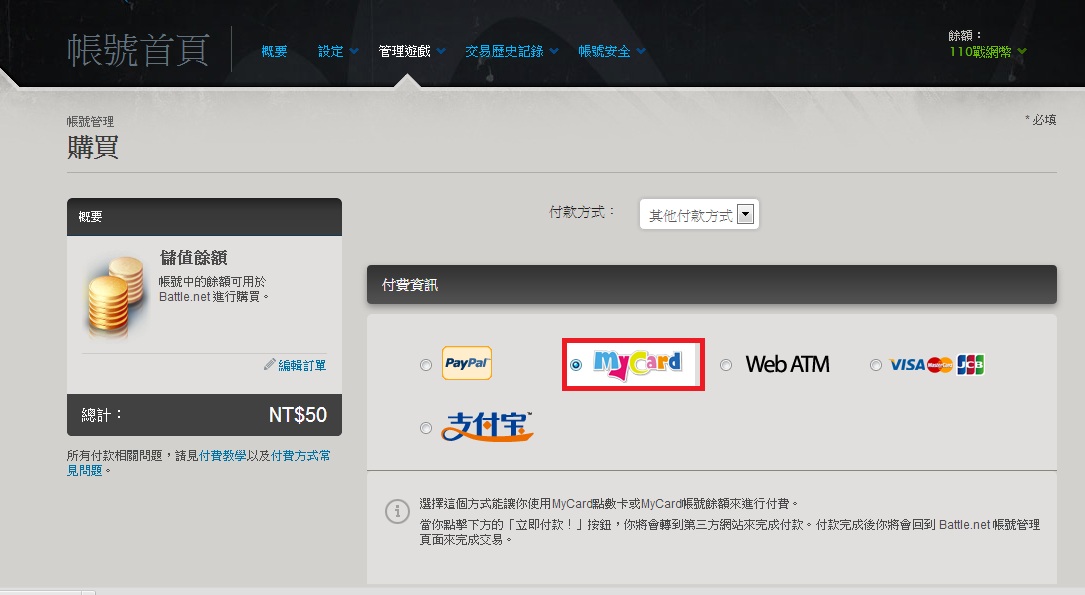 BattleNet..如何储值MyCard呢?