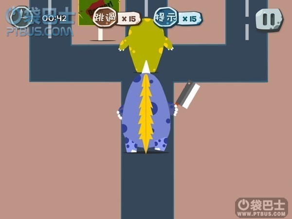 第六十一关:先让小怪兽向左移动,移动第三次的时候,立即触摸女怪兽向上移动,小怪兽就会跌落下去。