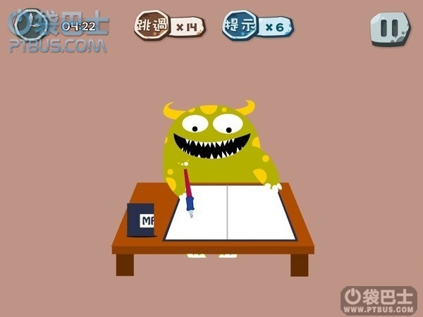 第六十五关:其实这一关非常简单,只不过考验的是人的耐心。方法就是先 让小怪兽拿起笔,然后滑动书面,它就会开始写字,你要一直不断地滑动,保持它一直在写的状态,大概持续30秒-1分钟时间,再让它停笔,这时书本封面就会翻开,然后死神出现在小怪兽背后,接受死亡的审判吧。