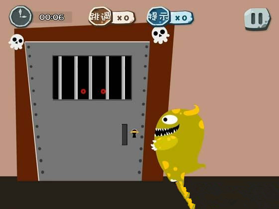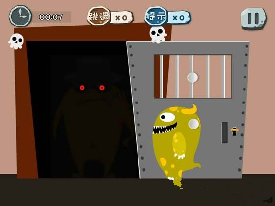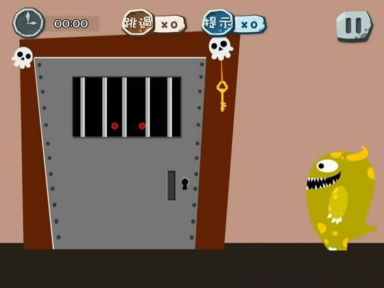 1、如下图,点击一下钥匙,让小绿怪拿着;