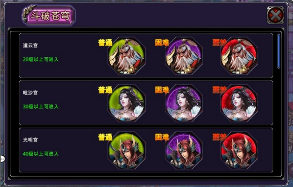 2、每层分为“普通、困难、噩梦”3个难度。