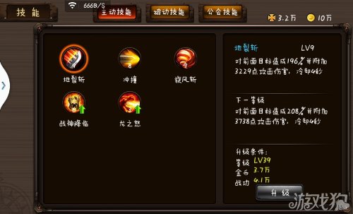 2、主动技能建议冲撞不用点太高,小编一般都是作为躲BOSS伤害用的技能,其他技能必须跟着等级点满龙之怒不建议点有一点就够了。