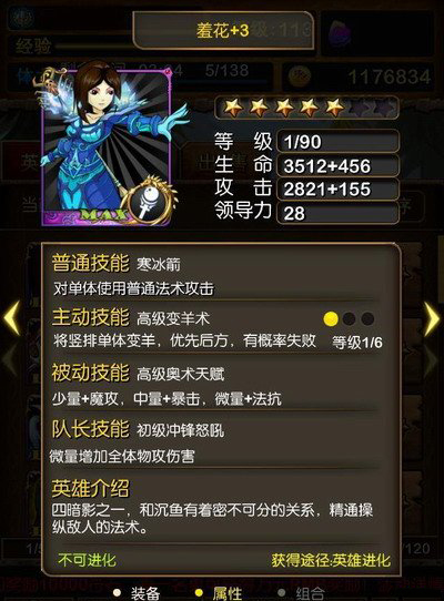 主动技能:高级变羊术,将竖方单体变羊,优先后方,有概率失败