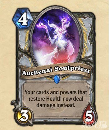 奥金尼灵魂祭司4点法力水晶3攻5血,技能为将我方的治疗类卡牌转换为伤害类卡牌。作为光环型的随从,奥金尼灵魂祭司在场上时,能将以治疗为主的牧师完全转化为以输出为主的“暗影”牧师。在使用上需要注意的是,奥金尼灵魂祭司不会改变敌我判定。比如暗鳞治愈者,其技能为战吼,为所有友方角色恢复2点生命值,如果你有奥金尼灵魂祭司,打出暗鳞治愈者,那么暗鳞治愈者的说明会变为对所有友方目标造成2点伤害。所以,在与奥金尼灵魂祭司配合使用的治疗卡牌的选择上,尽量选择具有可靠选择指向性的卡牌,以避免搬起石头砸了自己的脚。这里推荐一个绝佳的配合,就是奥金尼灵魂祭司配合0法力水晶的治疗之环,效果是对全部随从造成4点伤害,在我方处于劣势时,可以很好地清除敌方的随从。清场后继续利用剩余的法力水晶召唤其他随从上场,可直接达到扭转形势的效果。