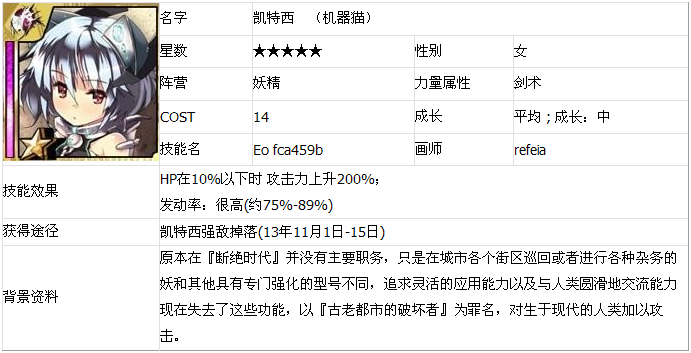 通过以上内容,玩家你快速了解百万亚瑟王五星卡牌凯特西的属性数据哦。希望对你有帮助。