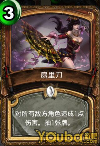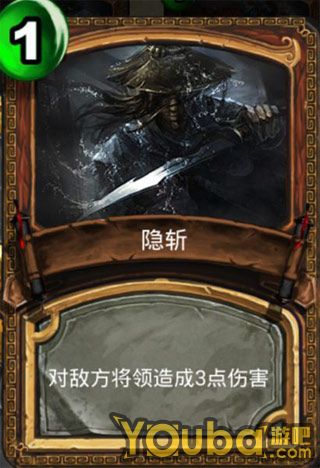 对敌方将领造成3点伤害。盗贼的专属神技,配合无名道人之类的卡牌,能用1耗费打出4点的伤害,推荐带上2张。