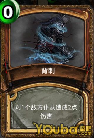 对1个敌方仆从造成2点伤害,0耗费的卡牌,前期非常强大,专门秒杀2血或者用于后期的补刀。建议带2张。
