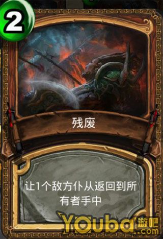 让所有的仆从返回到所有者手中。很强大的1张清场,要注意的是己方的仆从同样会回到手中,在敌人攒了一堆卡牌时用出,会让人崩溃的。同样我方仆从占优时,可以将那些残血或被削弱Boss牌及时收回避免损失。用的好的话能直接让对方崩盘。