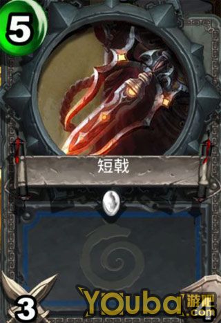 使你的武器获得+2攻击。要注意的是,攻击+2是可以叠加的,也就是说带上2张可以+4,再配合甑姬本身的短戟,瞬间打出7点的伤害,直接冲脸吧。