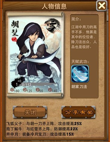 游戏中开局胡斐属性最新数据,该弟子是《雪山飞狐》和《飞狐外传》两部小说的主角。大掌门开局胡斐最新加入的,把金蛇郎君替换了下来。