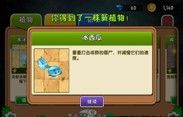 打开礼包,就可以知道自己充值之后随机获得什么植物,今天的RP还可以,抽到了“冰西瓜。