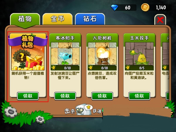 充值过程没什么好说的,跟其他IOS内购游戏差不多。充完之后,就可以点击右上角的“商店”,进入植物商店,此时商店里面会出现一个领取植物礼包的界面。