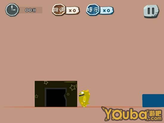 2、点击左边的黑色盒子,让小绿怪进入另一个世界。