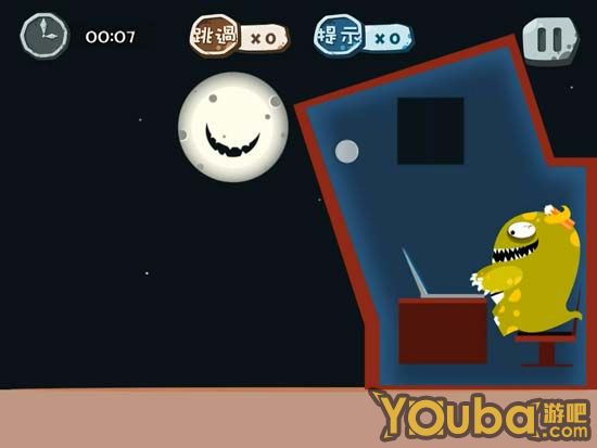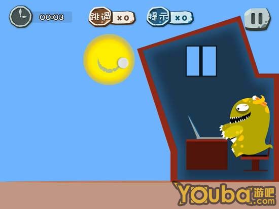 2、吹气不能停,然后按住月亮向右移动,重复2-3次即可。让小绿怪夜以继日的工作,然后就趴下了。