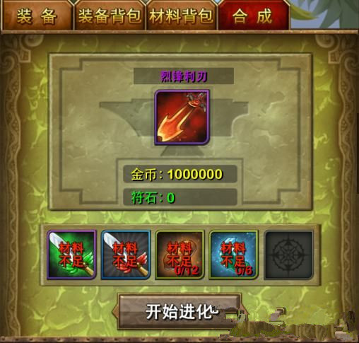 合成80级紫色装备需要100W的金币,外加一件对应的75紫装和对应的60蓝装,此外还需要在公会副本掉落的装备材料。