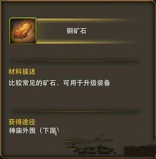 铜矿石,获得途径是新开的副本——神庙外围(下层)