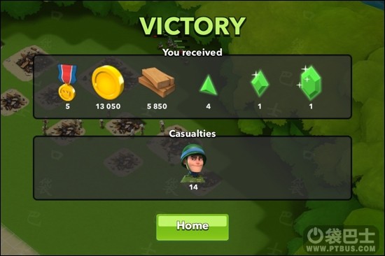 最后一张图,成功打下boom beach 21级boss,得到的奖励还是蛮丰富的,5级大本,得到了13050金币,5850木材,还有若干的水晶,这个水晶之前也说过,打boss只要胜利了是必掉的。