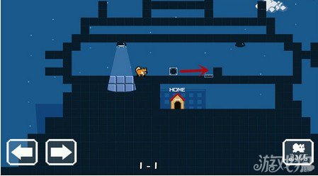 入门关,只要将箱子推到凹槽里去,前面的灯就会亮起,下面的地面就会消失,跳下去就可以到家了。