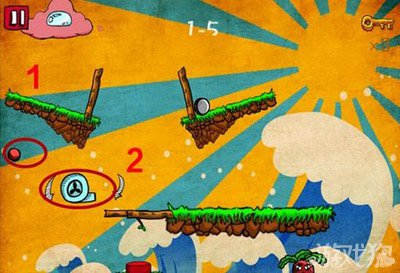 此关略微坑爹,左侧的2个石球都是摆设,玩家可以不用理,只需点击下图红色标志处的红板即可开启机关顺利通关。