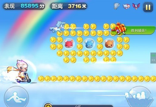 3.当玩家追上长脚的宝箱,就会提示胜利捕获,并获得一定数量的变现得分。根据小编目前经验,奖励有5000-12000不等,一般都为8000分奖励。