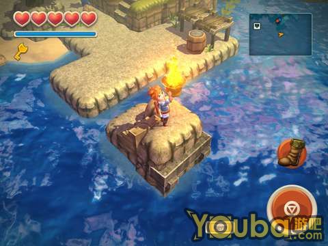 接着他要找一盏点着的喷灯,就在右下方,用雨靴跳过去即可,火盆就是他所说的“喷灯”。