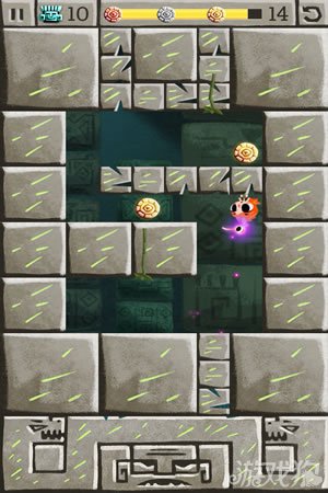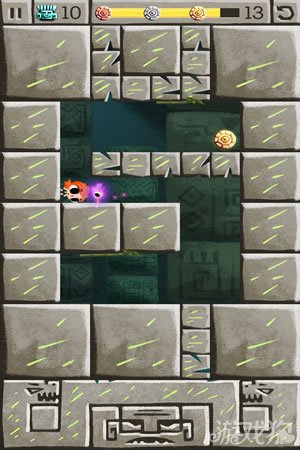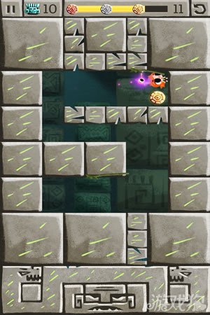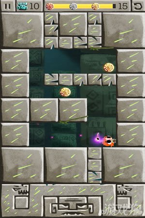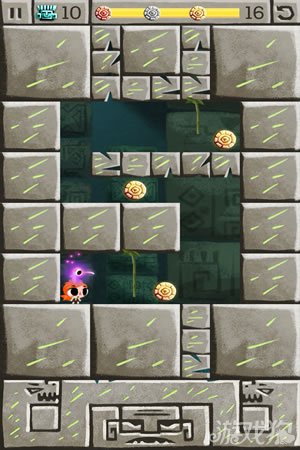 祖奇和她的小伙伴PICO已经站在神庙门口了。本关有三个金币,全部吃掉为结束。每移动一步地图上方的黄色进度条就会就会减少一点,吃完所有金币之后如果黄色进度条上的金币图标还在的话就能得到金牌通关。