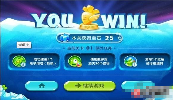 先连续建造二个瓶子炮塔升一级(视能力升级),清除道具。