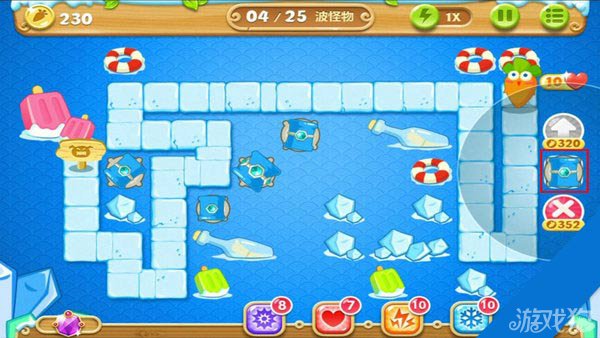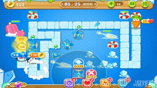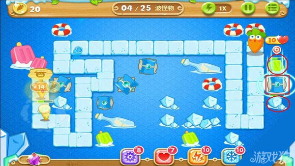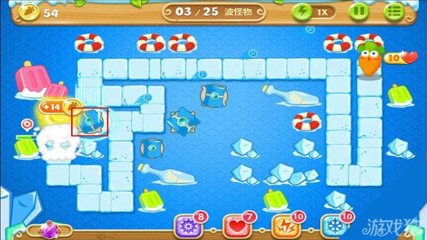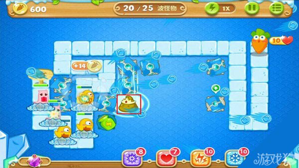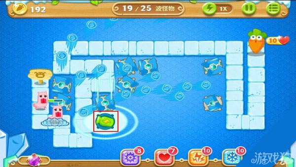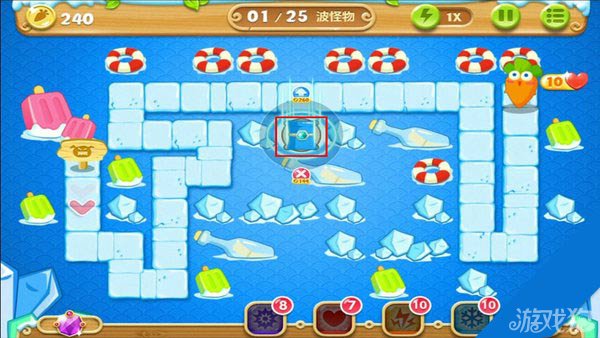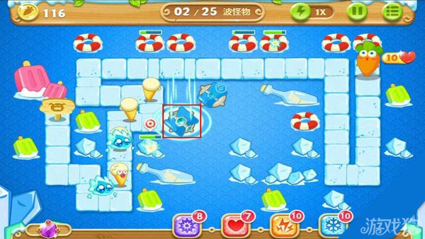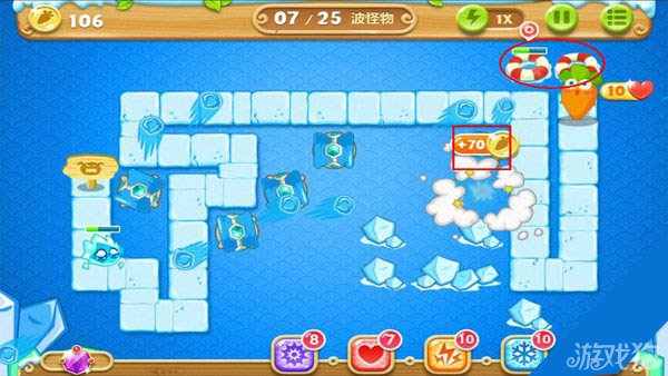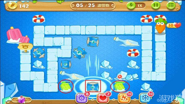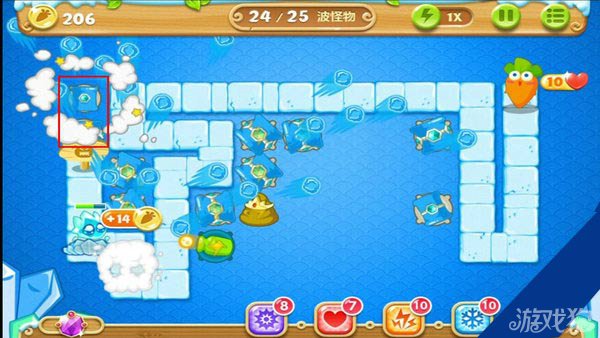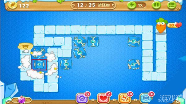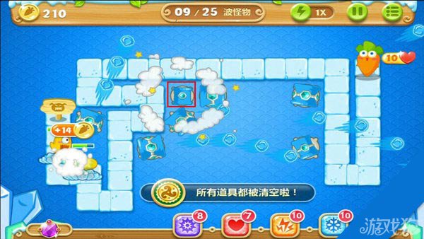 建造冰锥塔(顶级)清除右上方道具。