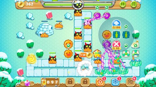 清除障碍物后会得到一个太阳花和两个魔法球。这时候把隐藏出现的炮塔都升级,再继续清除周围的障碍物。