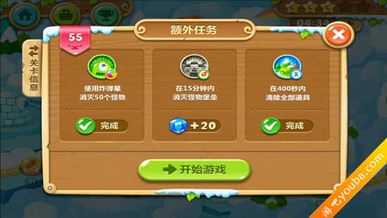 3、在400秒内清除全部道具。