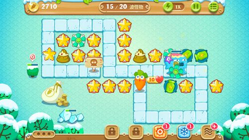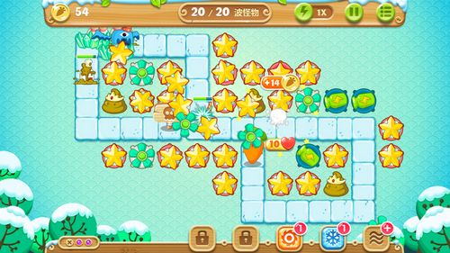 清除大部分的障碍物候,可以继续建造一些便便、瓶子炮塔、炸弹星星。