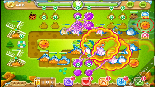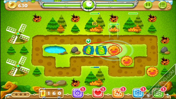 在两个风车旁边建立一个减速风扇塔主攻风车