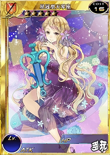 | 背景资料 | 从天琴座的群星光辉中提炼出和织女星配对的少女。演奏竖琴,每天都在祈祷人类的安全和平稳。她的竖琴有让所有人能打起精神的不可思议的力量。 |