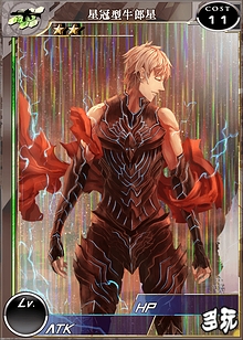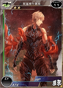 | 背景资料 | 从天蝎座的群星的光辉中提炼出和天蝎座配对而生的女魔法剑士。擅长火系魔法。性格要强,对任何人都不客气。明知猎户座在躲着她,但就因为看不惯他偷偷摸摸的态度而更喜欢盯着他。 |