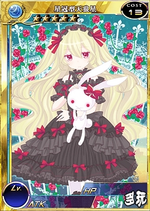 | 背景资料 | 从巨犬座的群星的光辉中提炼出和军市一配对而生的少女。一被制造出来就和军市一分开,完全不知道对方的存在被养大。无表情也无感情。经常带着兔子的布偶。 |
