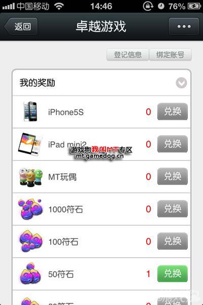 进入领取奖励界面后先要绑定账号,奖励是通过游戏中的邮件形式来发放的。可抽取的奖励如下。