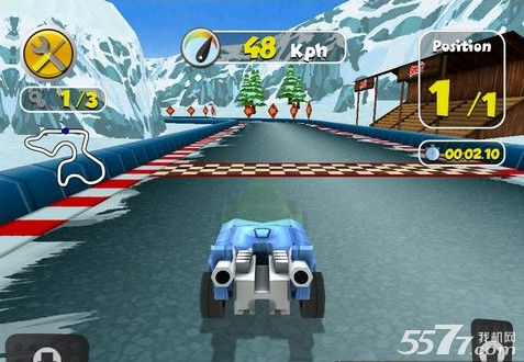 首先小编给大家介绍的是画面方面:上文小编说了它采用的是卡通题材,但它更是3d模式,而且色彩亮丽丰富,制作精美细致,将虚幻和真实完美的结合,十分有趣味十分另类,真心不错。让大家既能享受极速赛车的同时欣赏梦幻般的卡通世界哦。
