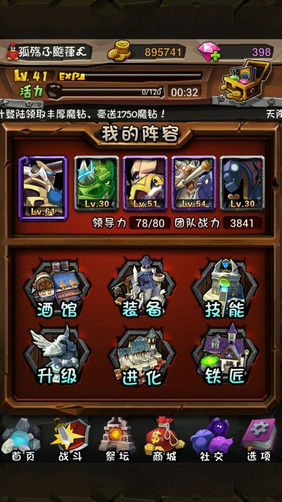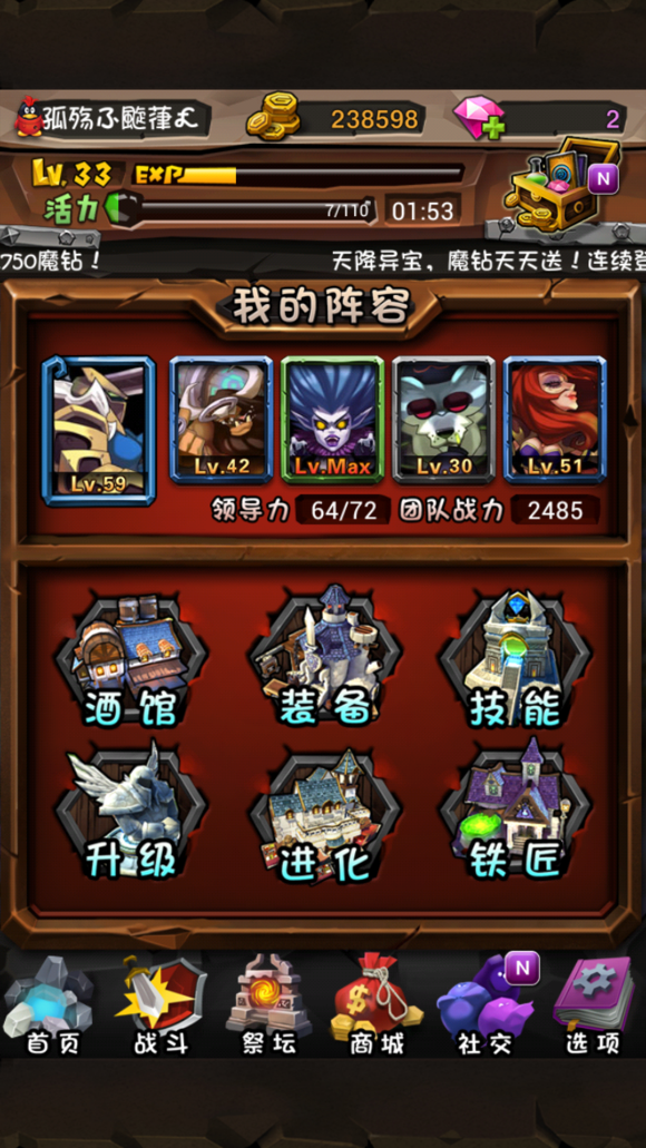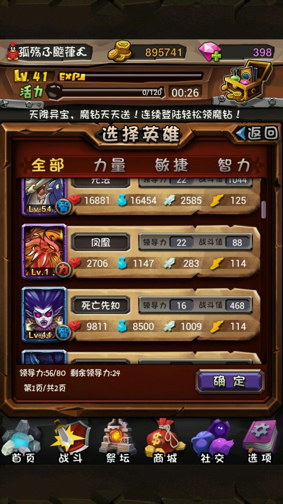 10.前期只有一个小小肯定是不行的,所以第二天可以用系统送的魔钻去抽个英雄。当然抽到什么要看脸了