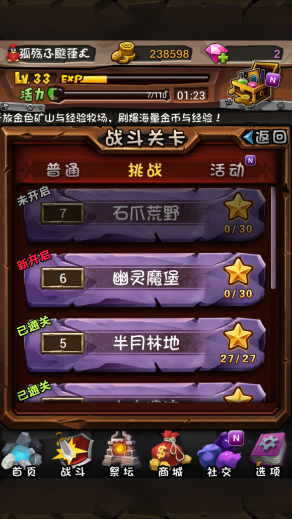 7.25级之后,当晚上10.30开始,买双倍,买活力,实测有绿杖的龙骑能够到9-10.这时候就一直扫荡把,能到33级左右,刷完6管活力。本来的一管+系统送的一管+11点前更新的两管+11点跟新后的两管。第二天不能再够买活力了,这时候就清挑战本吧。