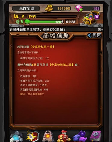 当你充值一定的金额,系统会赠送相应的金币,例如专享特权第二重,就有100,000金币的入账哦!