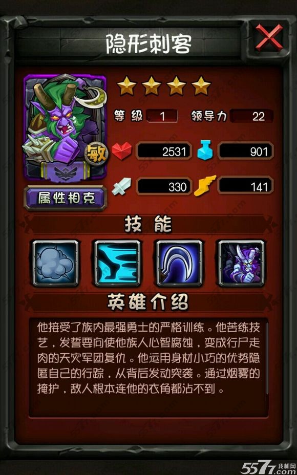 隐形刺客技能:也是要拥有2技能。3技能加攻击暴击。