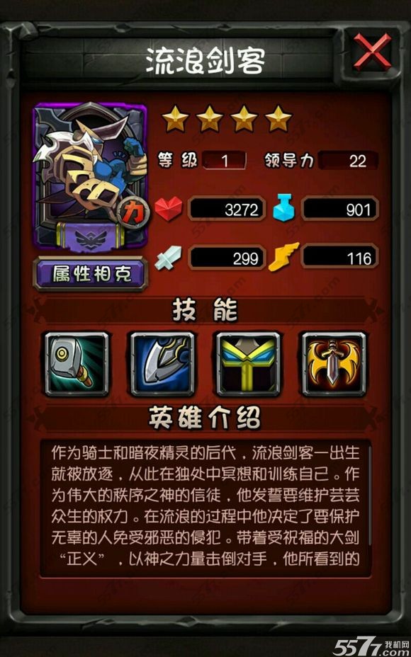 【炽魂】(被动技能)永久提高自身攻击力5%/10%/15%/20%。